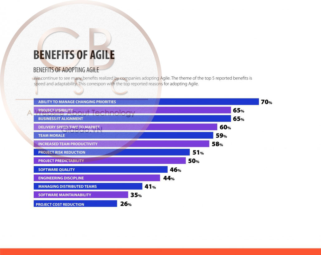 Agile là triết lý với các phương pháp mới thay thế cho phương pháp theo mô hình truyền thống (Waterfall) đã khẳng định vị thế khi đem đến cho cá nhân và tổ chức những lợi ích nhất định. Vậy những lợi ích đó là gì, tạo sao thế giới đang chuyển mình rất nhanh để thích ứng với Agile? Khảo sát của VersionOne năm 2020 về việc triển khai Agile đã cho thấy có sự cải thiện trong các lĩnh vực sau: