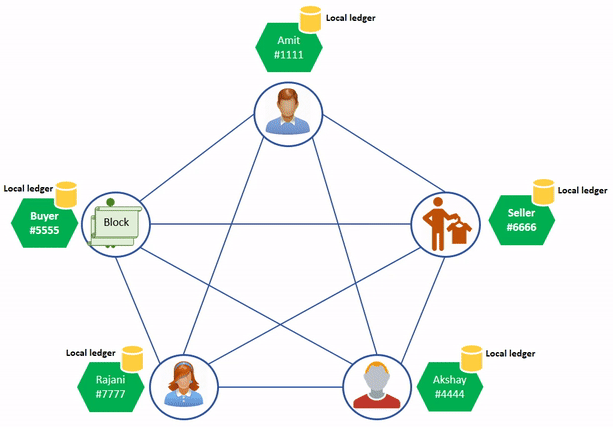 Nếu có nhiều hơn 2 người dùng, thì công nghệ Blockchain cũng vẫn không thay đổi cách hoạt động, lúc này 2 hoặc nhiều người dùng trao đổi với nhau thì các giao dịch trong cùng một hệ thống (cùng một mạng) phải được liên kết (nối lại, xích lại, chaining) lại với nhau thành một mảng duy nhất. Và mỗi người trong mạng sẽ có được toàn bộ lịch sử giao dịch của những người khác trước đó. Như vậy nếu có 5 người chơi, thì sẽ có tới 5 bản ghi của lịch sử giao dịch được phân tán trong mạng. Nếu một trong 5 người tự ý sửa đổi bản ghi để đưa cho 4 người còn lại, 4 người kia sẽ biết ngay có gian dối và họ sẽ không chấp nhận.